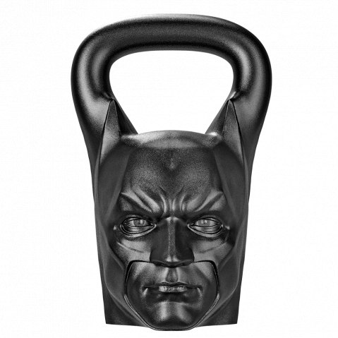Гиря Бэтмен. Цвет — черный, вес 24 килограмма. Выполнена в виде головы Темного рыцаря Готема. Широкая ручка удобна для хвата, гиря отлично сбалансирована.